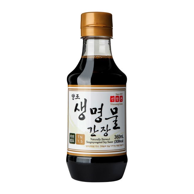 Sengmyongmul Soy Sauce is Shinangchon's signature brewed soy sauce made by fermenting soybeans and wheat for an extended period of time. It has a very rich taste and aroma covering all five primary flavors (sweet, sour, bitter, salty, and good flavor) found in naturally fermented soy sauce. The use of honey gives it a mild good flavor.